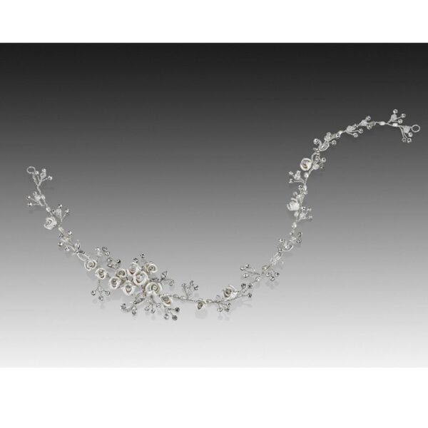 - Couture hair vine/halo with hand painted porcelain flowers, sparkling crystals and fresh water pearls.
