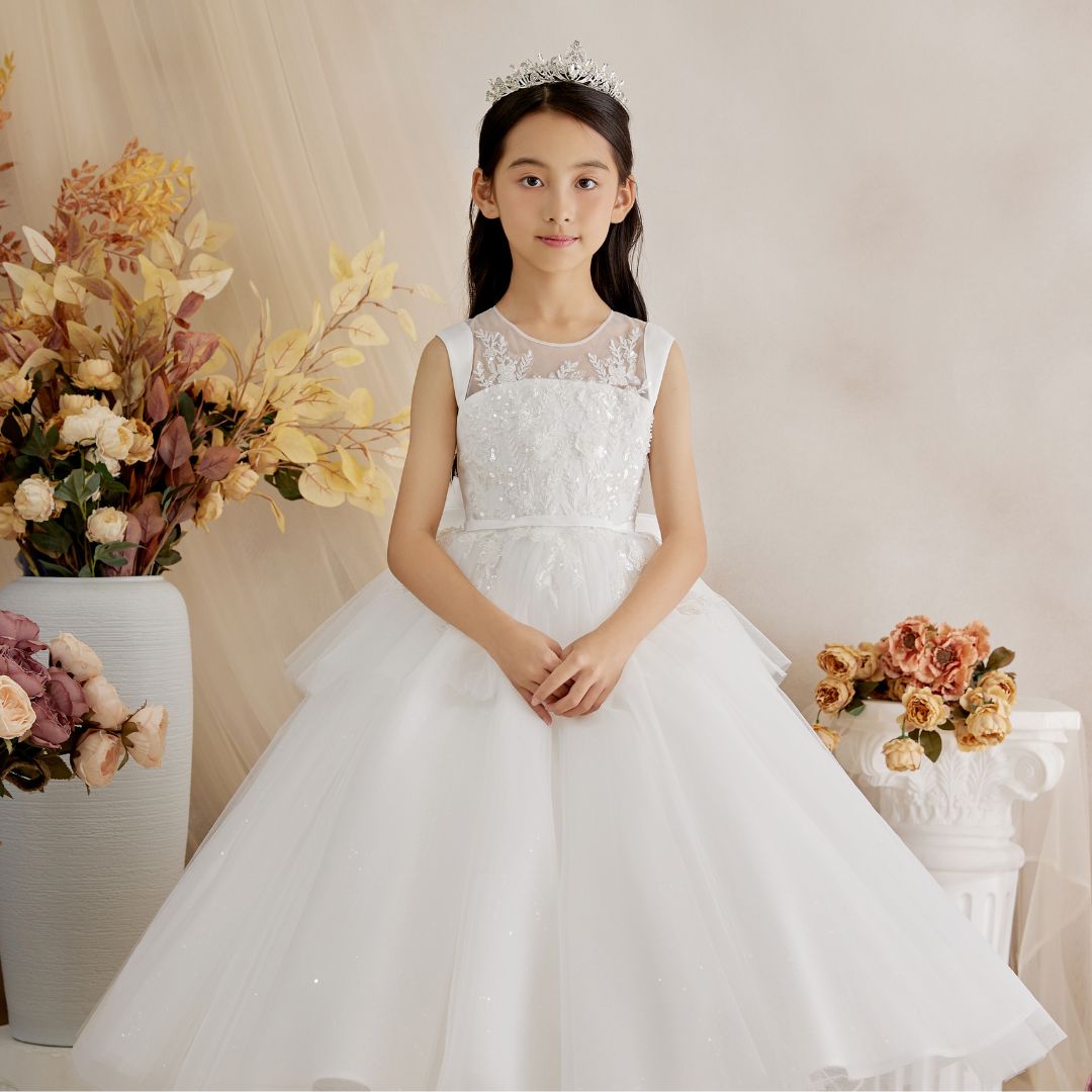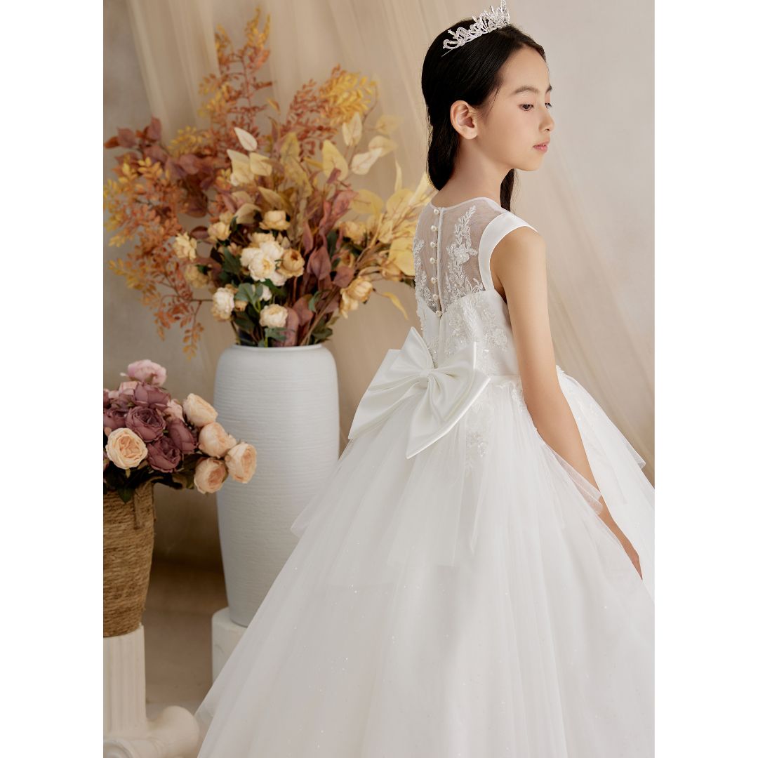 - This dress is ideal for First Communion and special occasions, crafted with delicate floral lace on the bodice and a full tulle skirt that adds volume and lightness. Its classic and refined design highlights sweetness and natural elegance, creating a harmonious, romantic, and truly unforgettable look.